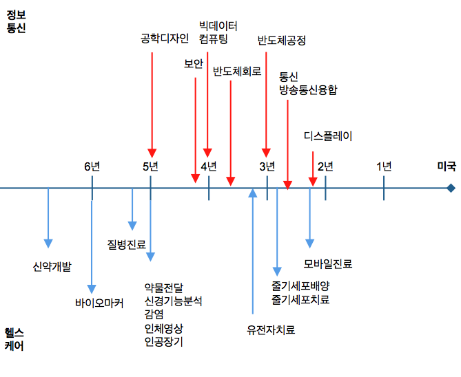 1) 헬스케어분야는 한국과 미국의 기술 격차가 현격한 분야이다.